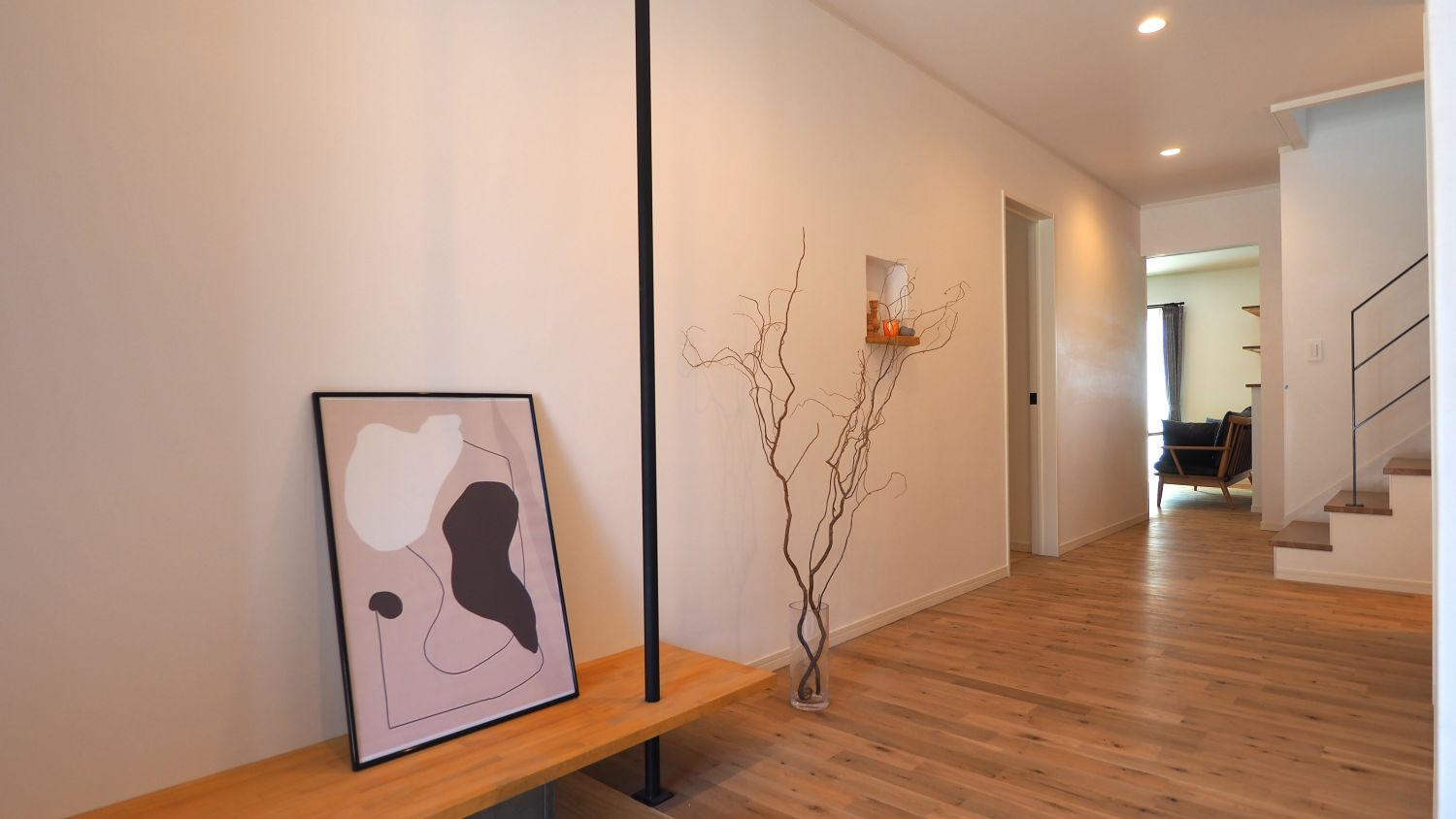無垢床の広い廊下です。